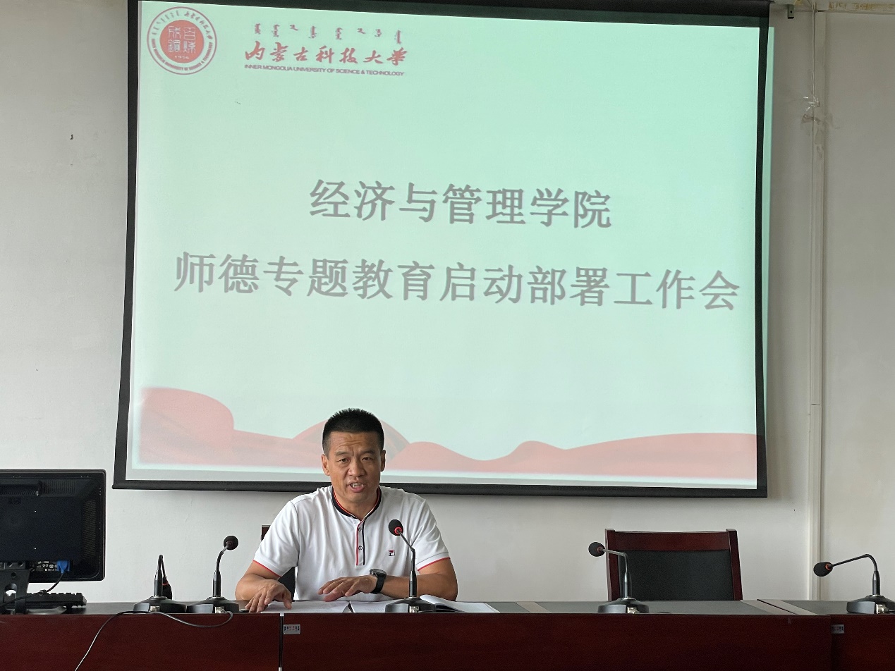 2021628日上午,beat365官方网站党委在腾飞楼A413召开师德专题教育启动部署工作会。党委书记王玉泉主持会议并讲话,学院在校教职工参加了此次会议。学院严格落实《内蒙古自治区教育厅关于在全区教育系统开展师德专题教育的通知》(内教教师函[2021]44号)通知精神,在全院范围内开展师德专题教育。
