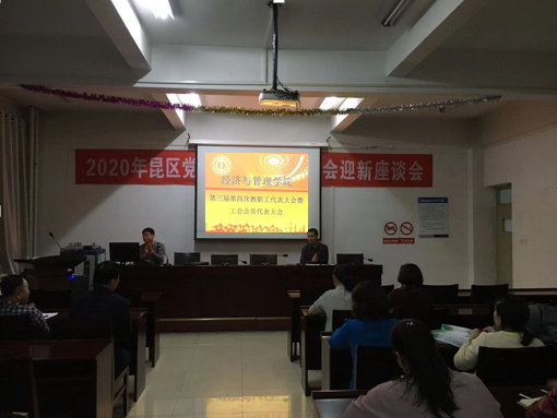 2019年12月30日,经管学院在腾飞楼A413召开第三届第四次教职工代表大会暨工会会员代表大会。本次大会共出席代表28人,审议通过了《院长工作报告》、《学院财务报告》、《beat365官方网站2019年度年终业绩分配方案》、《工会工作报告》,并对会前征集的有关提案进行了回复说明。