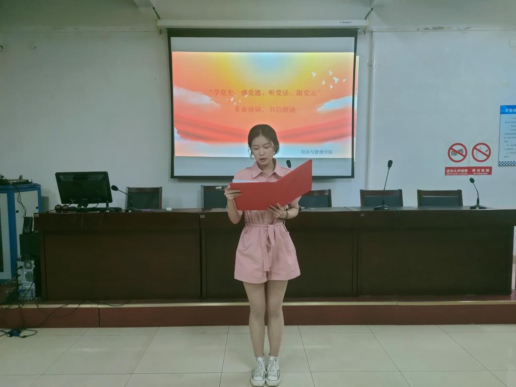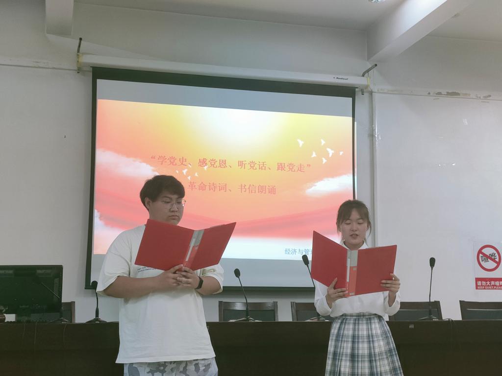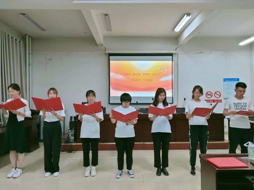 为推进党史学习教育进班级,做到学史明理、学史增信、学史崇德、学史力行,切实增强四个意识坚定四个自信、做到两个维护,按照《beat365官方网站党史学习教育工作方案》安排,学院级特开展学党史、感党恩、听党话、跟党走革命诗词、书信朗诵活动。