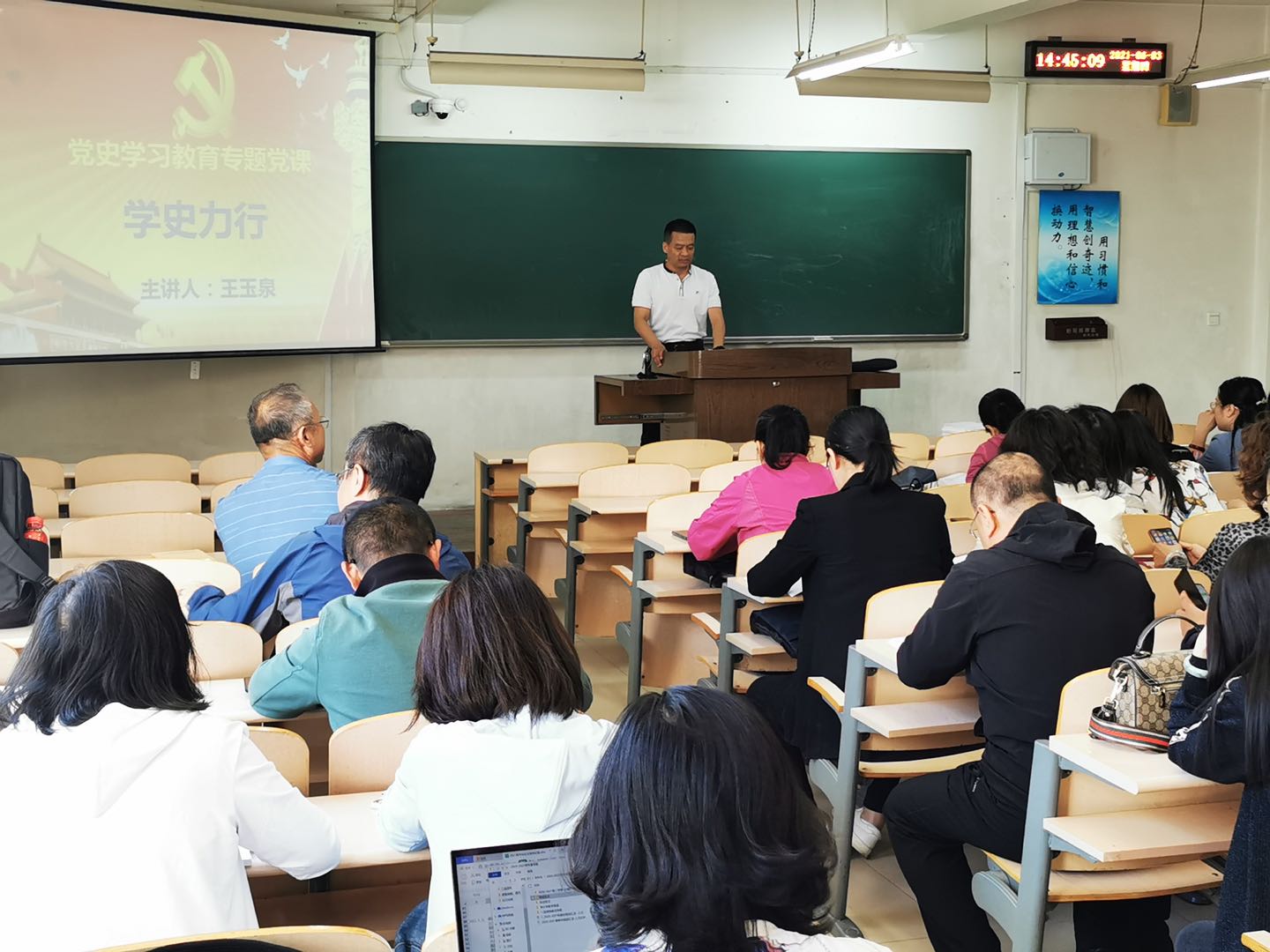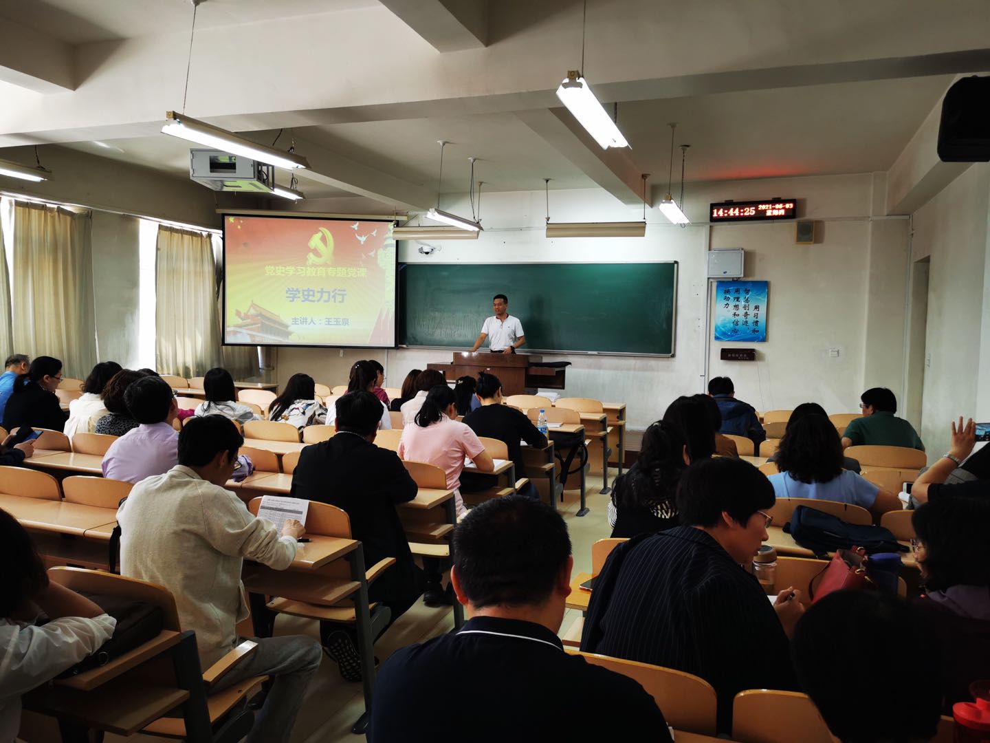 为高标准推进党史学习教育走深走实,全面贯彻落实学史明理、学史增信、学史崇德、学史力行目标要求,63日,beat365官方网站党委书记王玉泉以《学史力行》为题在春晖学堂E205为学院全体教职工讲授了一堂立足工作、切合实际、提升能力的党课。