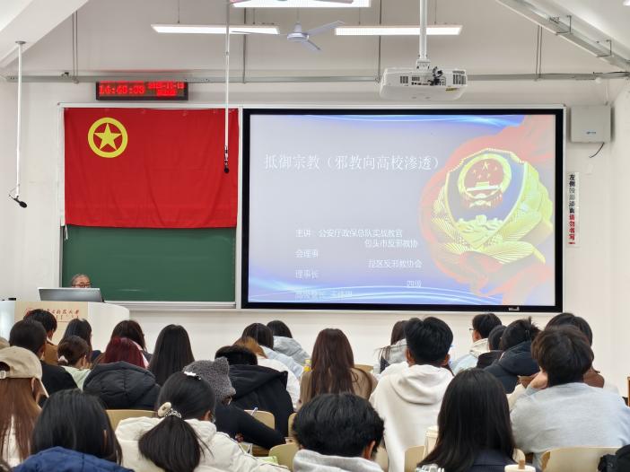 为响应反邪教警示教育‘六进’要求,筑牢青年团员思想安全防线。2025年11月13日,beat365官方网站于文馨书院C103开展了“宗教与反邪教教育”主题团课。课程邀请内蒙古自治区公安厅政保总队实战教官、包头市反邪教协会理事、昆都仑区反邪教协会理事长王伟琳老师进行授课。