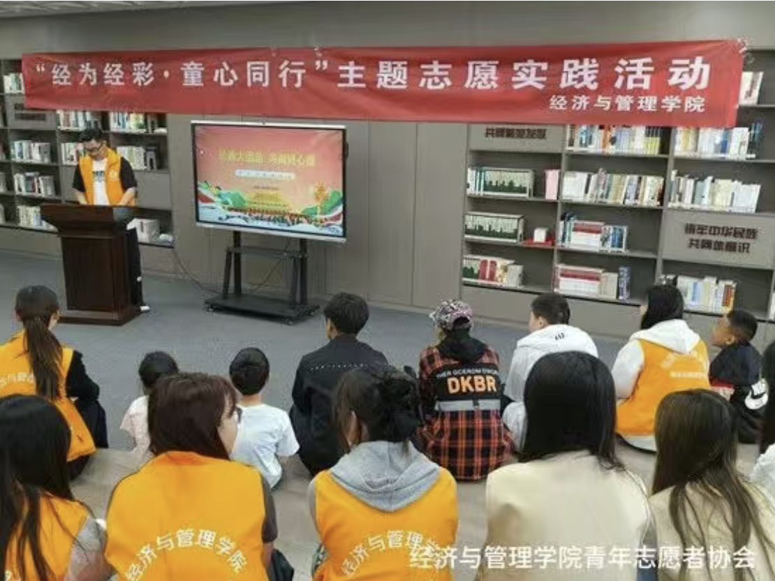 随后,志愿者带领孩子们到校图书馆石榴籽阅览室开展“民族大团结,共画同心圆”为主题的民族团结小课堂,课堂上志愿者不仅向孩子们介绍了我国各民族的基本状况、分布特点、民族服饰以及特色活动,还声情并茂地讲述了“三千孤儿入内蒙”的民族团结故事。志愿者和孩子们共同制作石榴花,大家齐心协力,将石榴制作的生动形象,深刻体会到各民族要像石榴籽一样紧紧抱在一起。