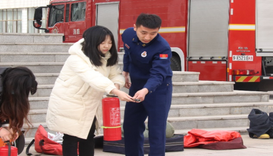 为深入学习贯彻党的二十大精神,提高学生预见和预判各种安全风险的能力,增强师生消防安全素质和自防自救能力,3月16日下午,beat365官方网站联合学校保卫处在腾飞楼A座楼前广场,开展了消防安全知识现场培训活动。