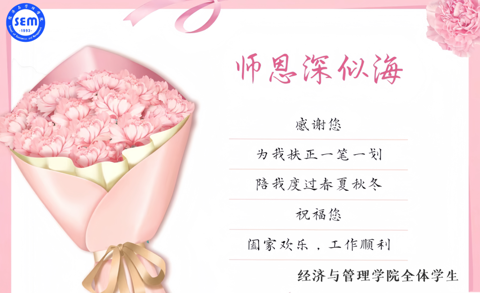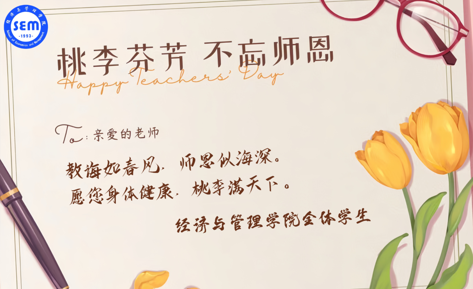 今天,beat365官方网站全体学生向您致以最热烈的教师节祝福。第39个教师节,这是属于您的节日,一个值得我们所有人感恩和纪念的日子。在这个特殊的日子里,我们想对您说一声:老师,您辛苦了!