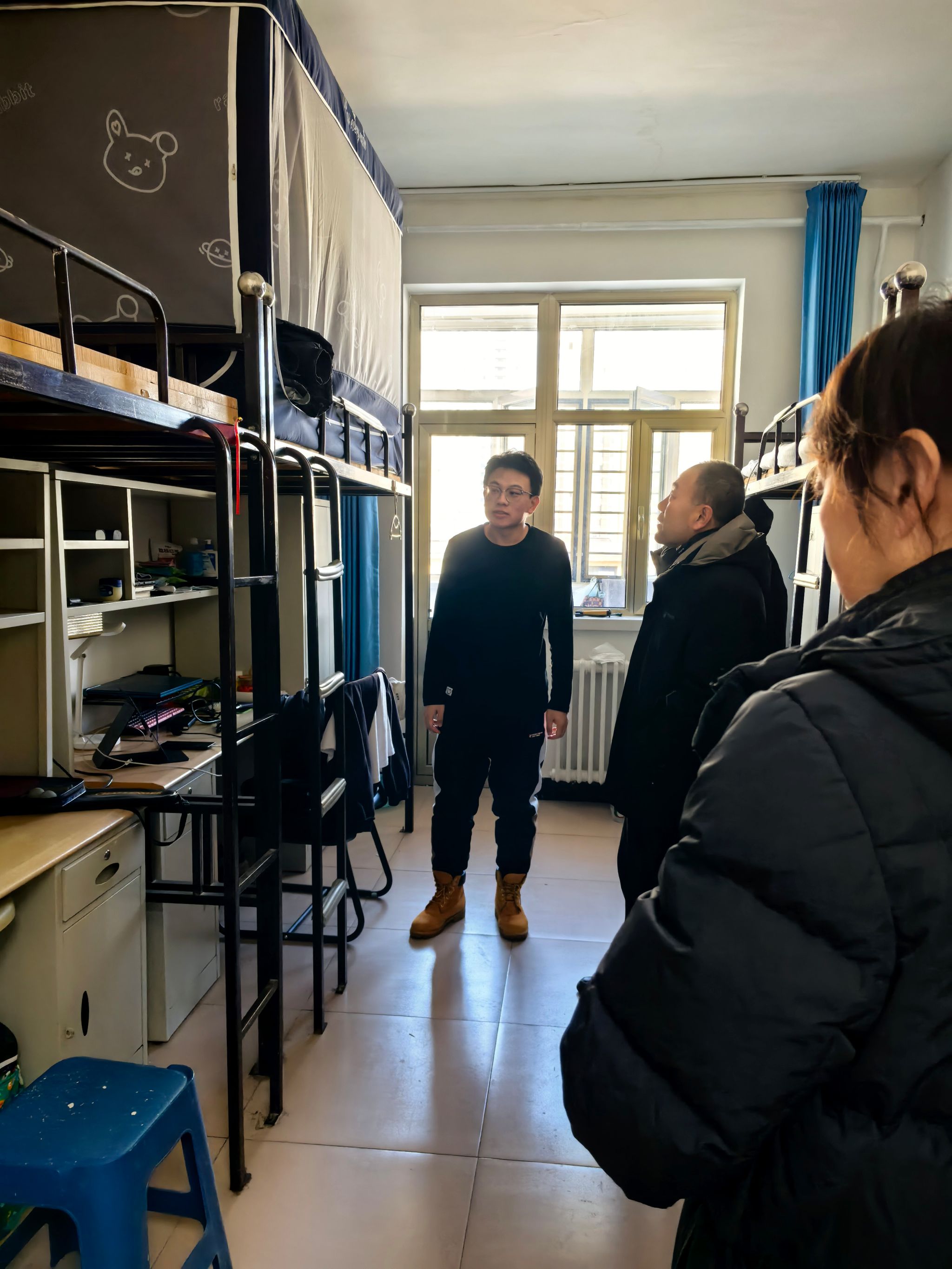 学院院长赵周华、辅导员王海珍、潘智辰及学院研究生会共同组成专项检查组,重点检查了学生宿舍中的安全隐患和内务卫生情况。