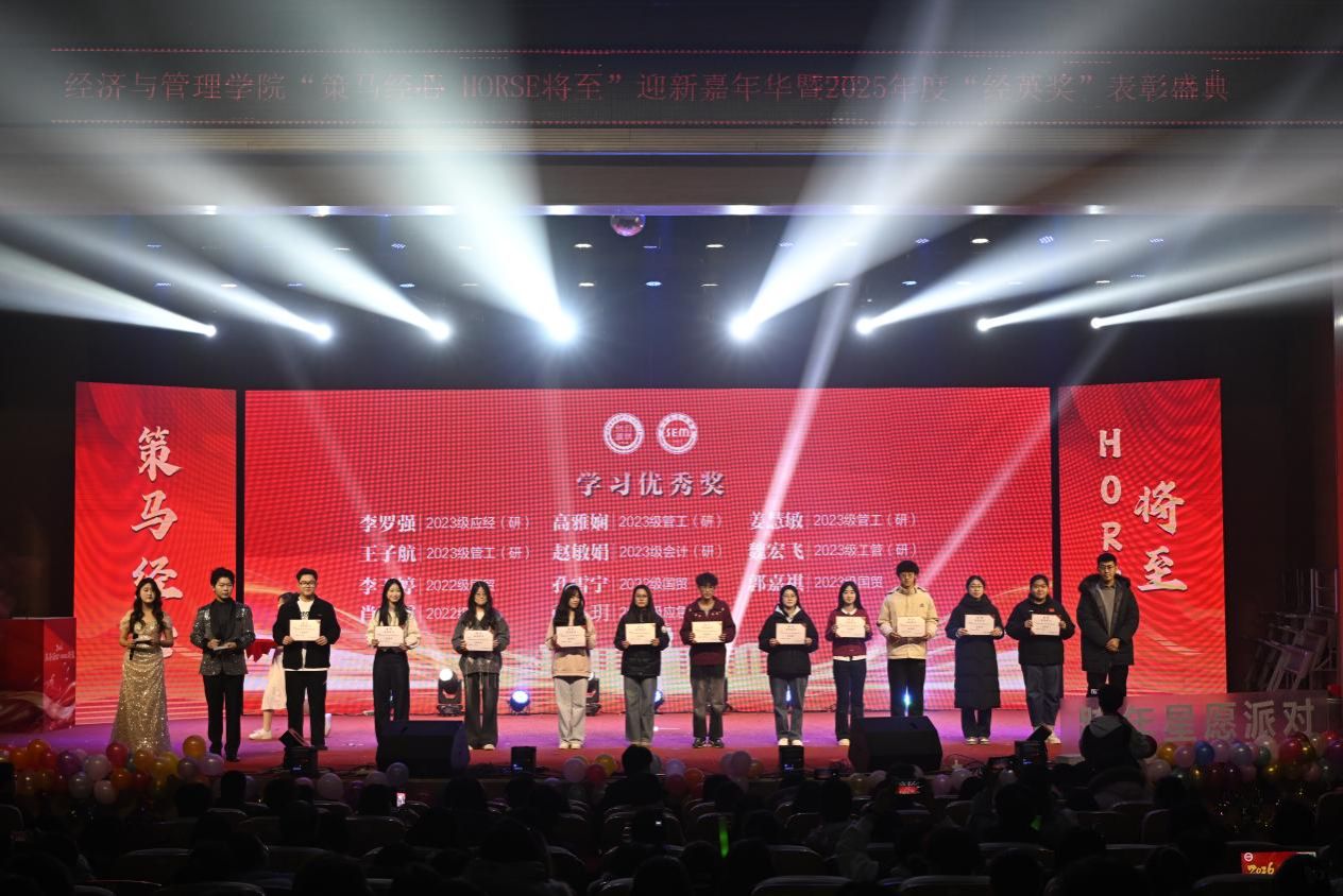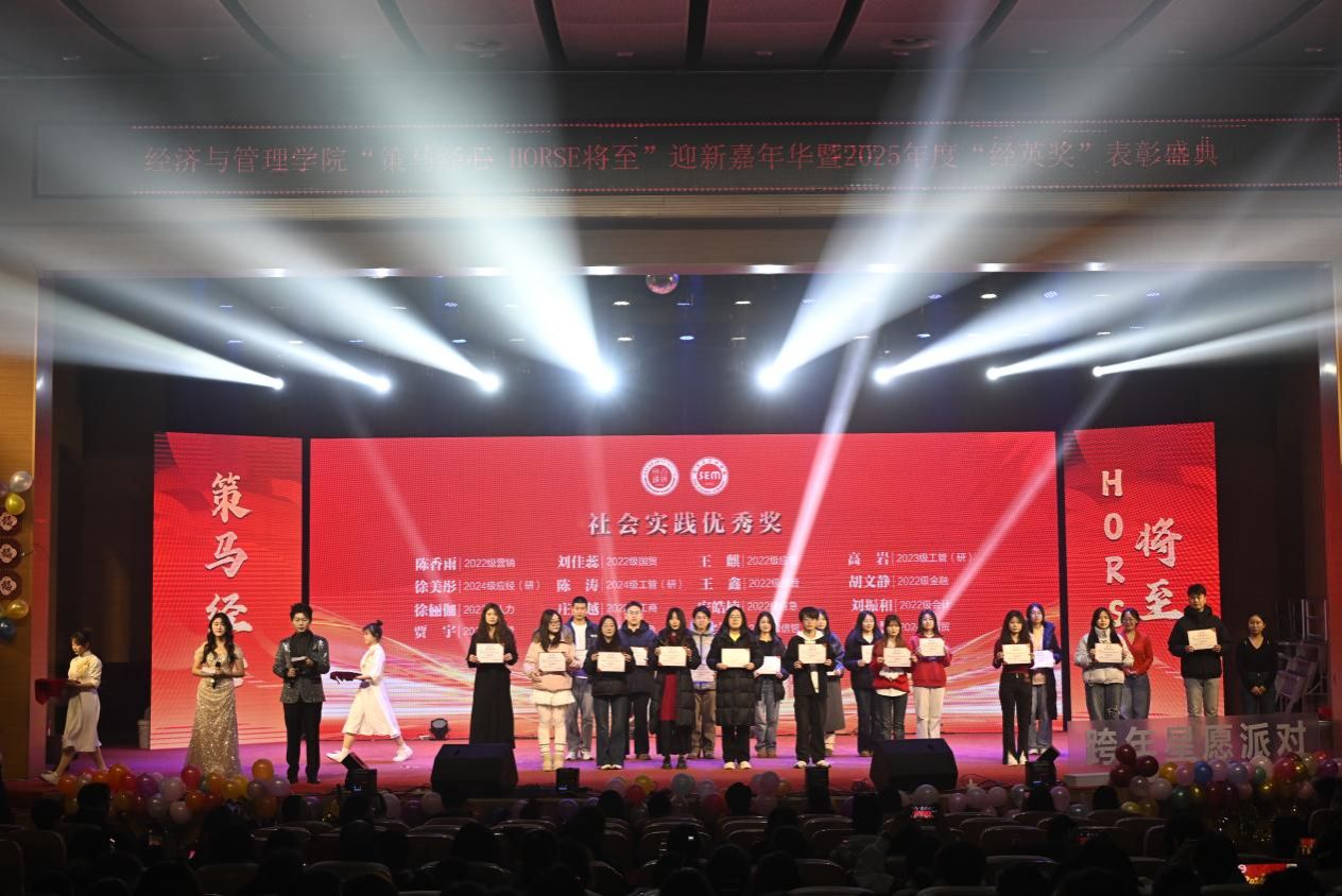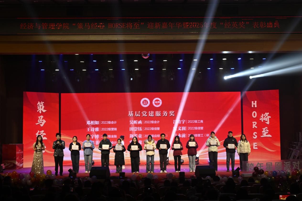 骏马踏歌辞旧岁,经管聚力启新章。2025 年 12 月 28 日,beat365官方网站 “策马经心,HORSE 将至” 迎新嘉年华暨 2025 年度 “经英奖” 表彰盛典在学校音乐厅璀璨启幕。全院师生齐聚一堂,共赴这场融合青春活力、荣誉表彰与新年期许的年度盛会,在欢声笑语中定格美好时光,在逐梦征程上凝聚奋进力量。