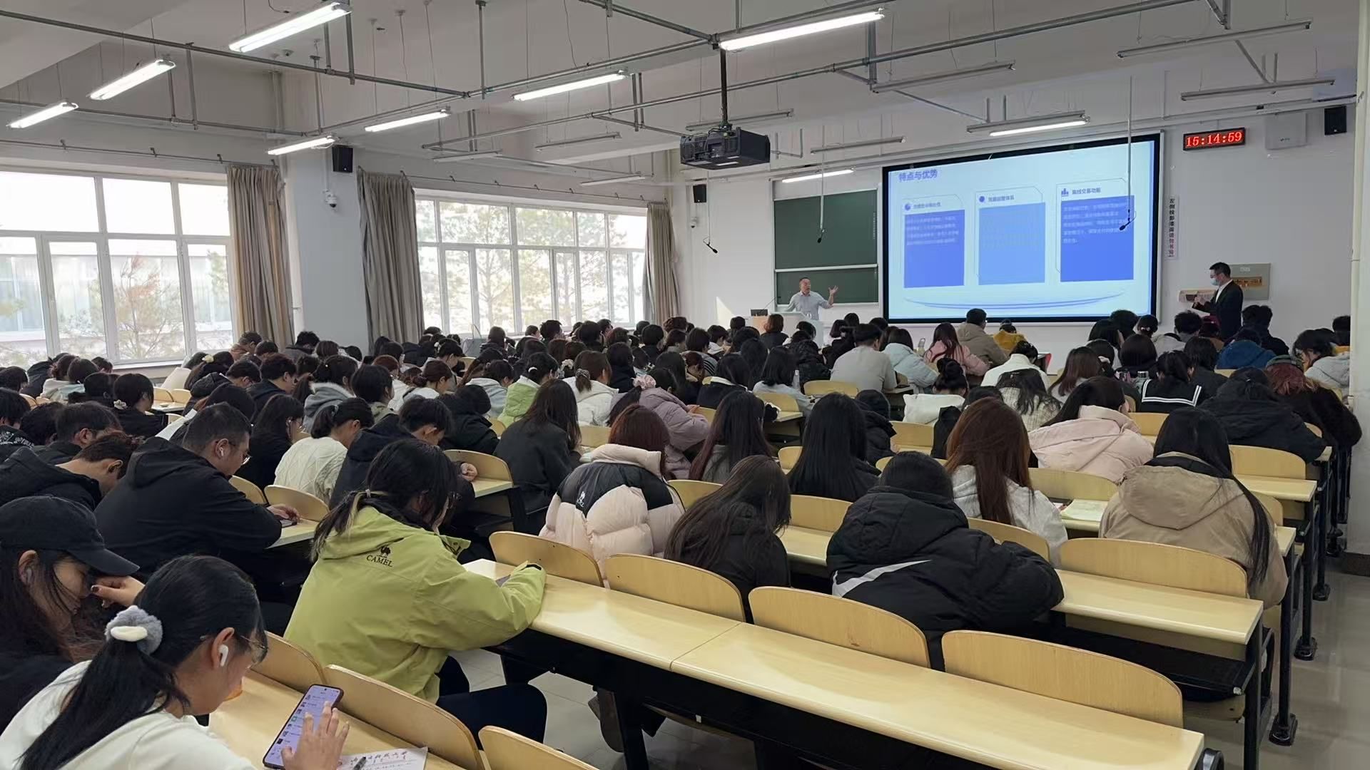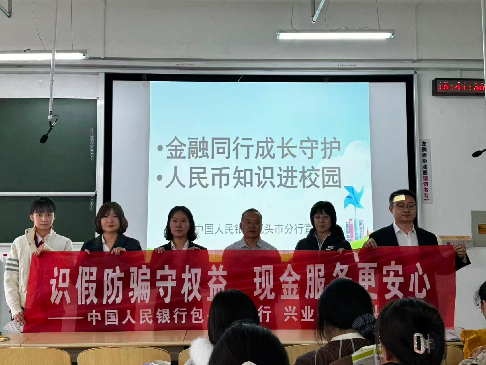 培训现场,中国人民银行包头中心支行货币金银科科长王健及兴业银行运营管理部赵芝雨围绕电信诈骗识别、人民币真伪鉴别、校园贷风险防范等核心内容展开讲解,通过案例分析、互动问答等形式,向同学们普及新型诈骗手段与防范技巧,引导大家树立正确的金融消费观念,守护好自身财产安全。