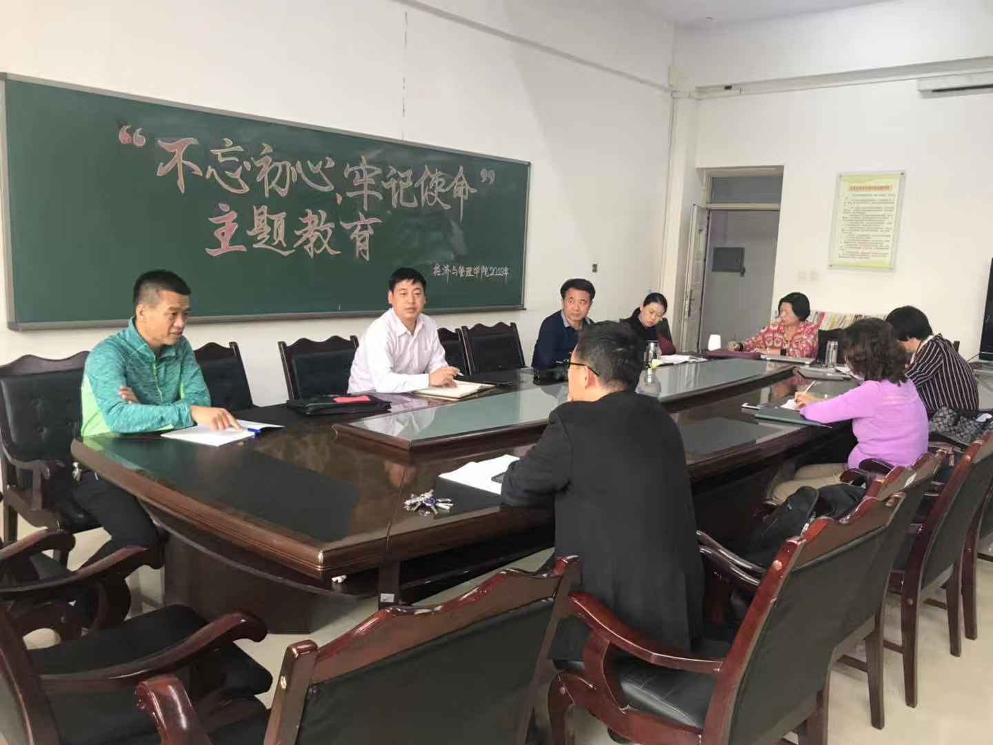 2019年10月12日beat365官方网站在腾飞楼A307召开“不忘初心、牢记使命”主题教育研讨会,会议由党总支书记马广辉主持召开,学院党政教领导参加了此次会议。会议研讨了近期“不忘初心、牢记使命”主题教育学习心得;各位领导在10月6日拟定调研题目的进展情况;向大家征集了对校领导个人和班子的意见建议。