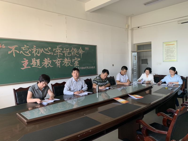 2019年9月24日下午,beat365官方网站在腾飞楼A307组织了“不忘初心、牢记使命”主题教育集中学习,党政教领导班子成员参加了学习。学习会上,党总支书记马广辉同志介绍了本次集中学习的重要性,公布了每天作息时间表,启用考勤机进行签到签退考核。24日下午的学习内容包括:图解“不忘初心、牢记使命”主题教育工作部署、“不忘初心、牢记使命”主题教育总结要求的四个维度、第二批“不忘初心、牢记使命”主题教育指导意见。