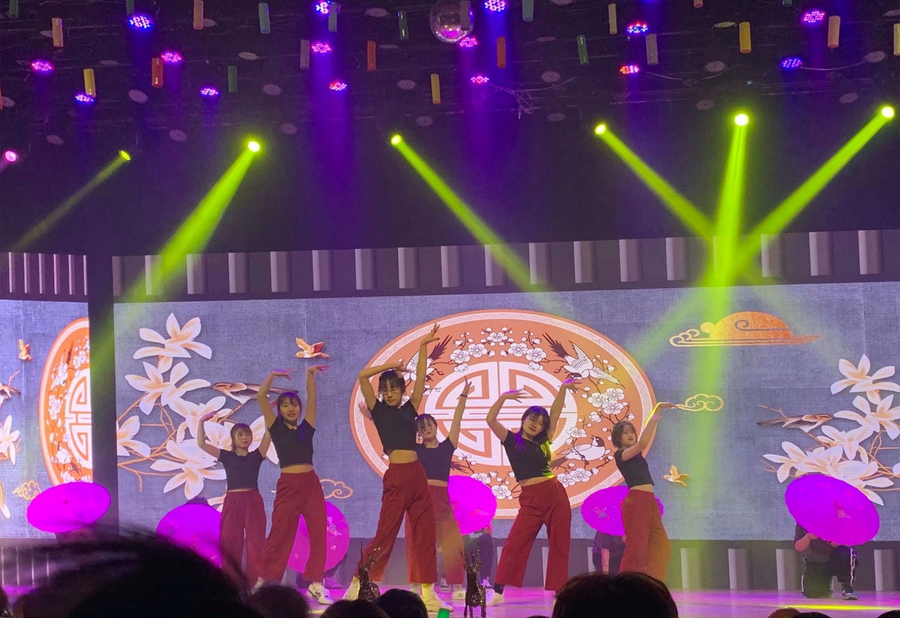 此次晚会共有11个节目:开场舞激烈火热high爆全场;古典舞“凤髻蟠空,袅娜腰肢温更柔。轻移莲步,汉宫飞燕旧风流”;