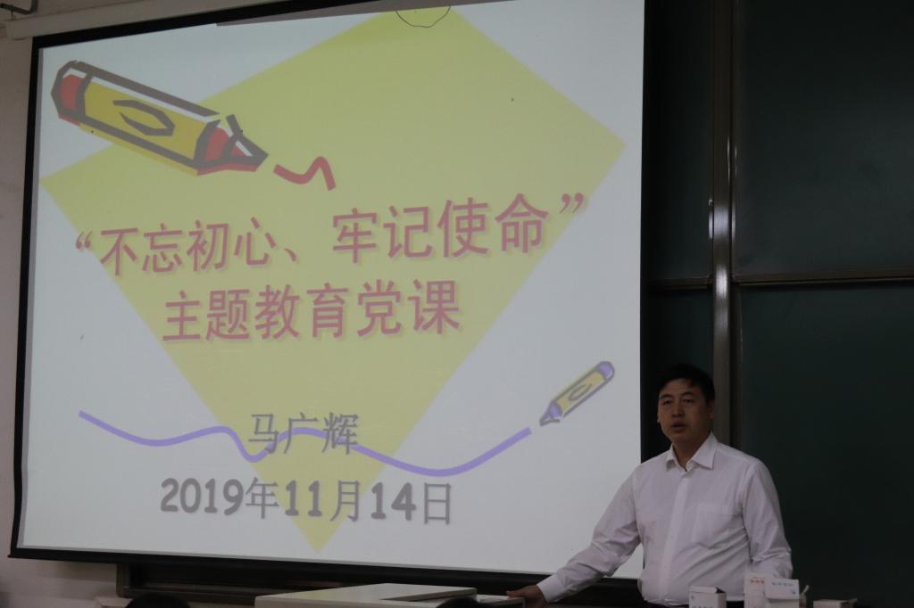 按照学校党委主题教育统一安排部署,20191114日,beat365官方网站党总支书记马广辉同志在逸夫楼G101讲“不忘初心、牢记使命”教育专题党课。