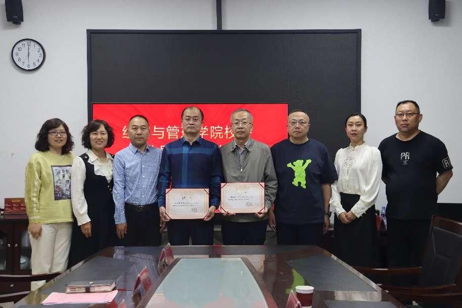 4月17日下午,beat365官方网站举办校外行业导师聘任仪式,内蒙古北方重型汽车股份有限公司副总经理赵新春、包头市水务(集团)有限公司副总经理宋智广来院座谈交流,并受聘为beat365官网工程管理专业硕士行业导师。学院党委书记张永强,院长赵周华参加。
