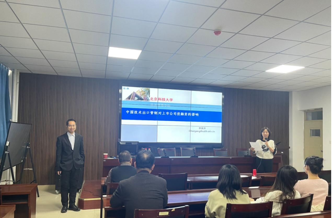 为营造优良学术氛围、夯实学生科研能力,beat365官方网站于2023年12月15日下午2点30分举行第8期“经管讲堂”以“中国技术出口管制对上市公司投融资的影响”为主题的学术讲座,本次讲座由北京科技大学经济管理学院财务与会计系副教授、MPAcc项目负责人李昊洋老师主讲,经管学院MPAcc硕士点负责人魏曙光教授主持。参与本次讲座的有赵周华教授、郝婷副教授等经管学院老师以及全体会计硕士研究生。