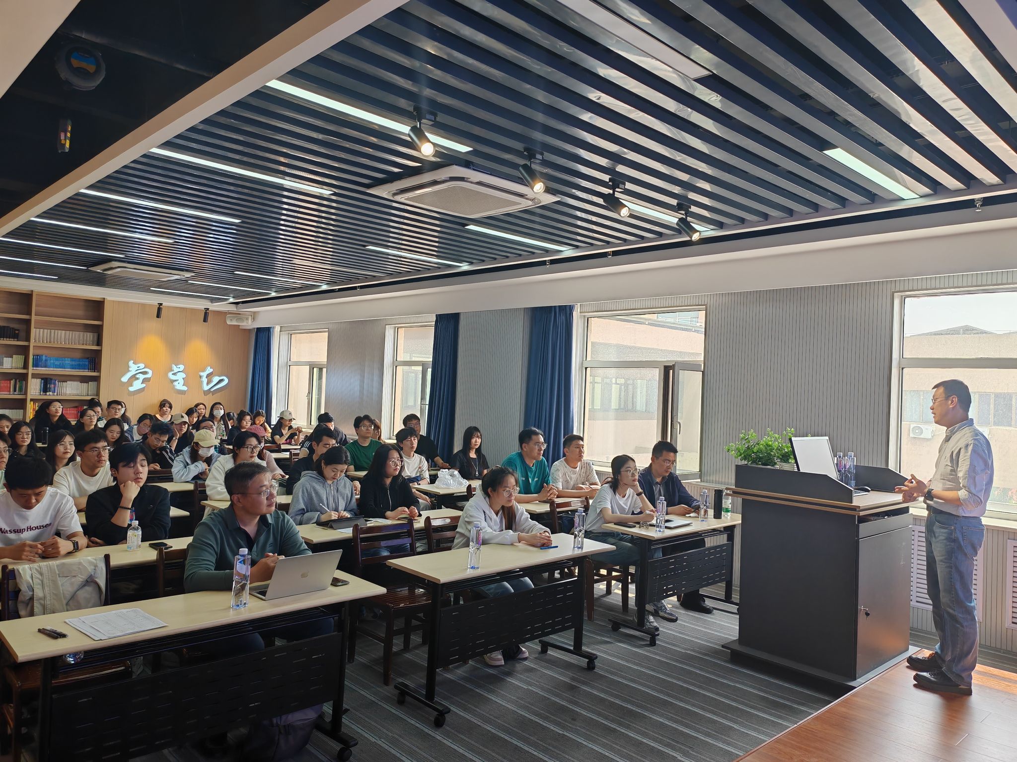 在主题报告中,从全球气候变化背景切入,系统分析了我国城市碳中和面临的挑战与机遇。他结合国内外典型案例,深入剖析了能源结构转型、低碳技术创新、碳市场机制设计等关键路径,提出多维协同治理模式。此外,他还分享了其团队在该领域的最新研究成果,为城市低碳转型提供了理论参考和实践启示。参会研究生纷纷表示,此次讲座拓宽了学术视野,对碳中和领域的研究方向有了更清晰的认识。