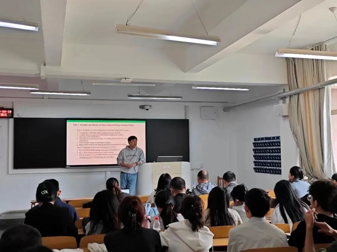 2025年9月19日,复旦大学孙谦教授应邀来到beat365官方网站,就“卖空限制与股票收益预测”与师生们进行座谈交流和学术讲座,为师生们带来了一场精彩的学术盛宴。 讲座中,孙谦教授并未局限于理论阐述,而是结合具体研究案例,深入浅出地讲解了卖空限制对股票市场的影响。他通过实际数据和图表,分析了政策实施前后股票价格的变化,指出卖空限制会导致市场信息量减少,从而使短期股价预测能力下降。孙教授的分享为师生们提供了一个“如何从现实政策变化中发掘有价值研究课题”的完整范例 在互动环节,师生们踊跃提问。针对学生论文写作的困惑,孙教授精辟地指出“做研究是创造新知识”,强调了学术创新的本质。边璐老师进一步就量化投资、机器学习应用、机构与个人投资者行为差异等前沿话题,与孙教授进行了深入交流。 本次讲座不仅加深了师生对资本市场微观结构的理解,更是一堂生动的“研究方法论”大师课,为学院的学术研究与人才培养注入了新的动能。