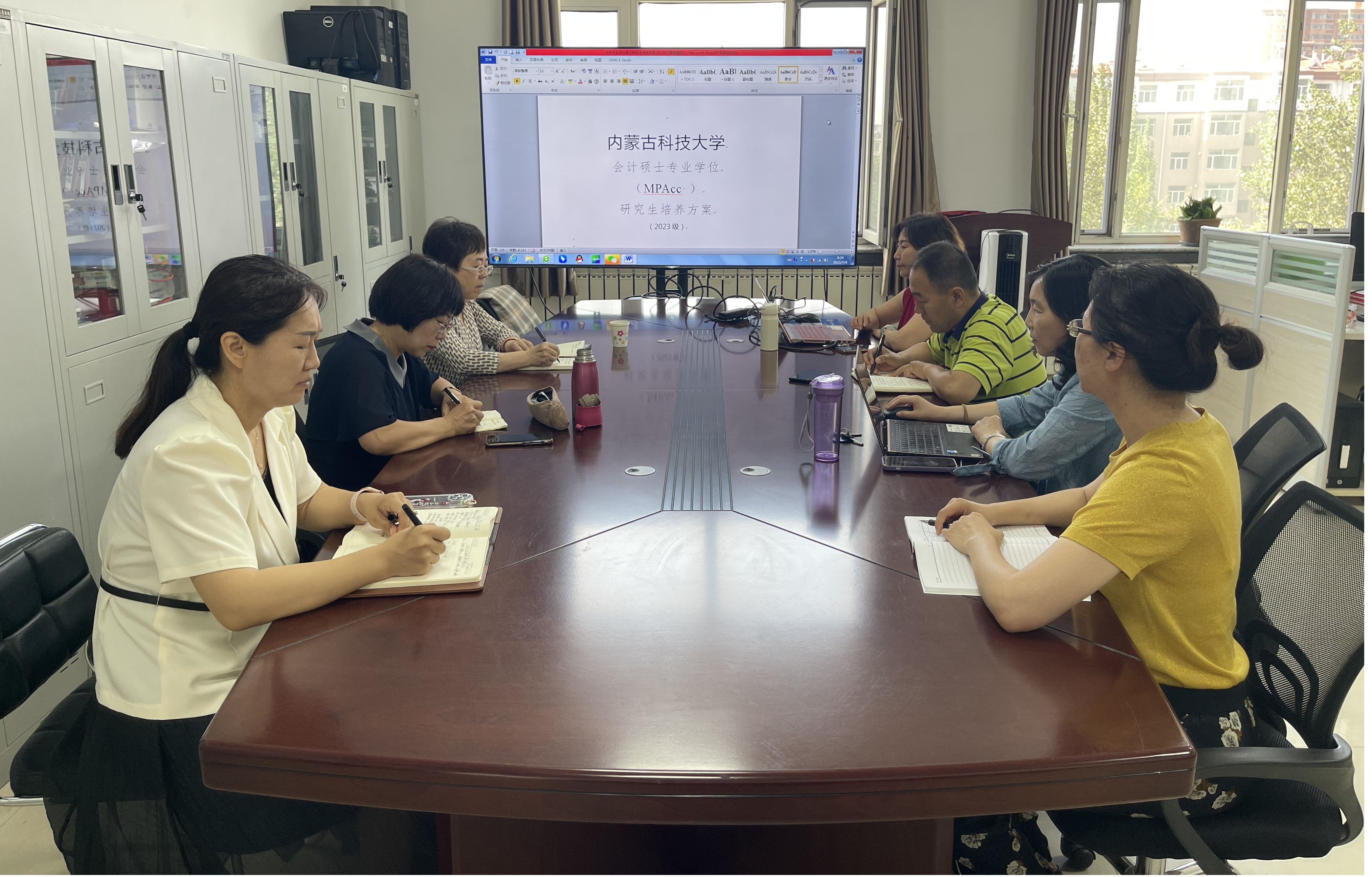 2023年7月4日上午9:00,beat365官方网站2023级会计硕士专业学位(MPAcc)研究生培养方案讨论会于腾飞楼A301举行。会计硕士专业学位点负责人魏曙光教授主持本次会议,参与本次会议的人员包括beat365官方网站副院长赵周华教授,会计硕士研究生导师王晓红副教授、郝婷副教授和王嘉嘉副教授,行业导师包头市财政科学研究中心赵丽君主任、内蒙古中普方信会计师事务所韩美云所长。